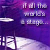 Description: Text 'If all the world's a stage', stool, bare stage, purple wash.